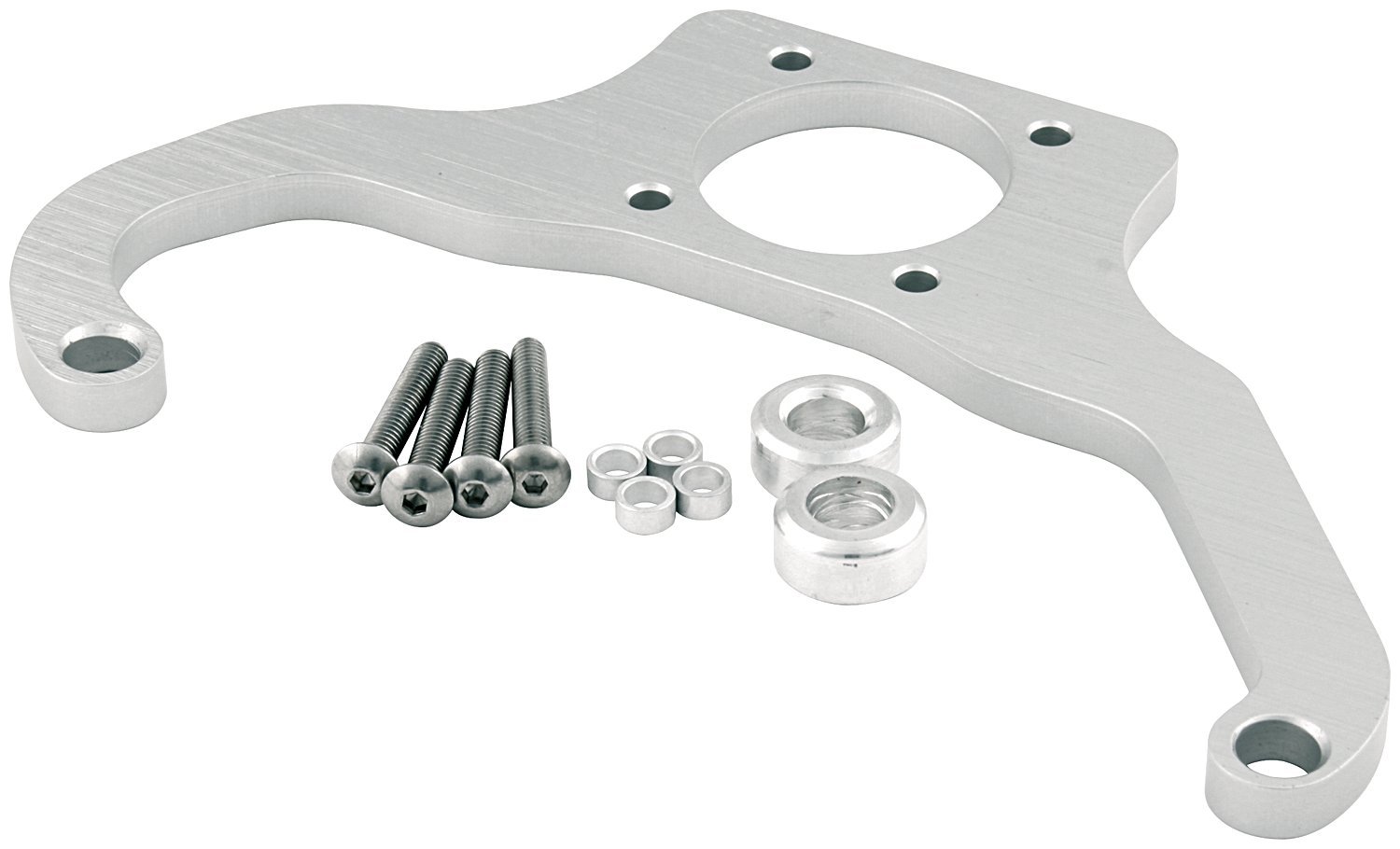 The ALLSTAR PERFORMANCE 54290 Fuel Regulator Bracket is designed to securely mount a single Magnafuel regulator on a Dominator flange. Made of durable aluminum with a natural finish, this bracket ensures precise fuel pressure regulation for optimal performance. MPN: 54290.