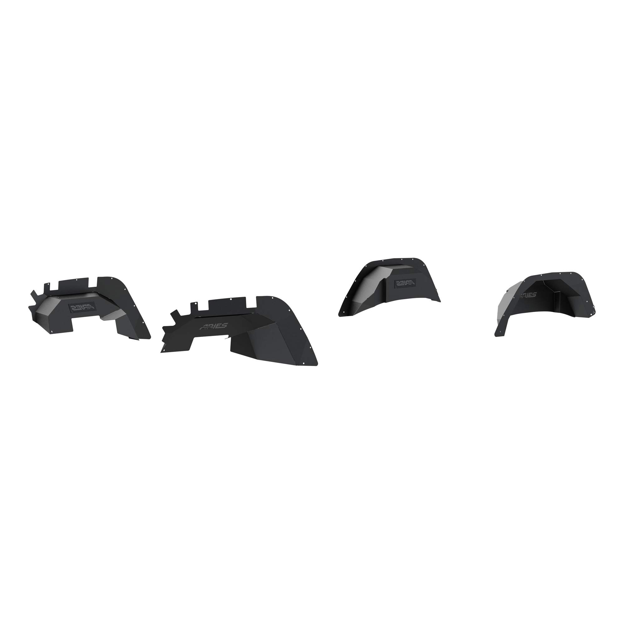 The ARIES 2500650 Black Aluminum Front and Rear Jeep Wrangler JL Inner Fender Liner Wheel Well Guard Covers are designed to protect your vehicle’s wheel wells from debris and mud, enhancing both style and functionality. Crafted from durable aluminum, these fender liners offer a precise fit and a sleek black finish. MPN: 2500650.
