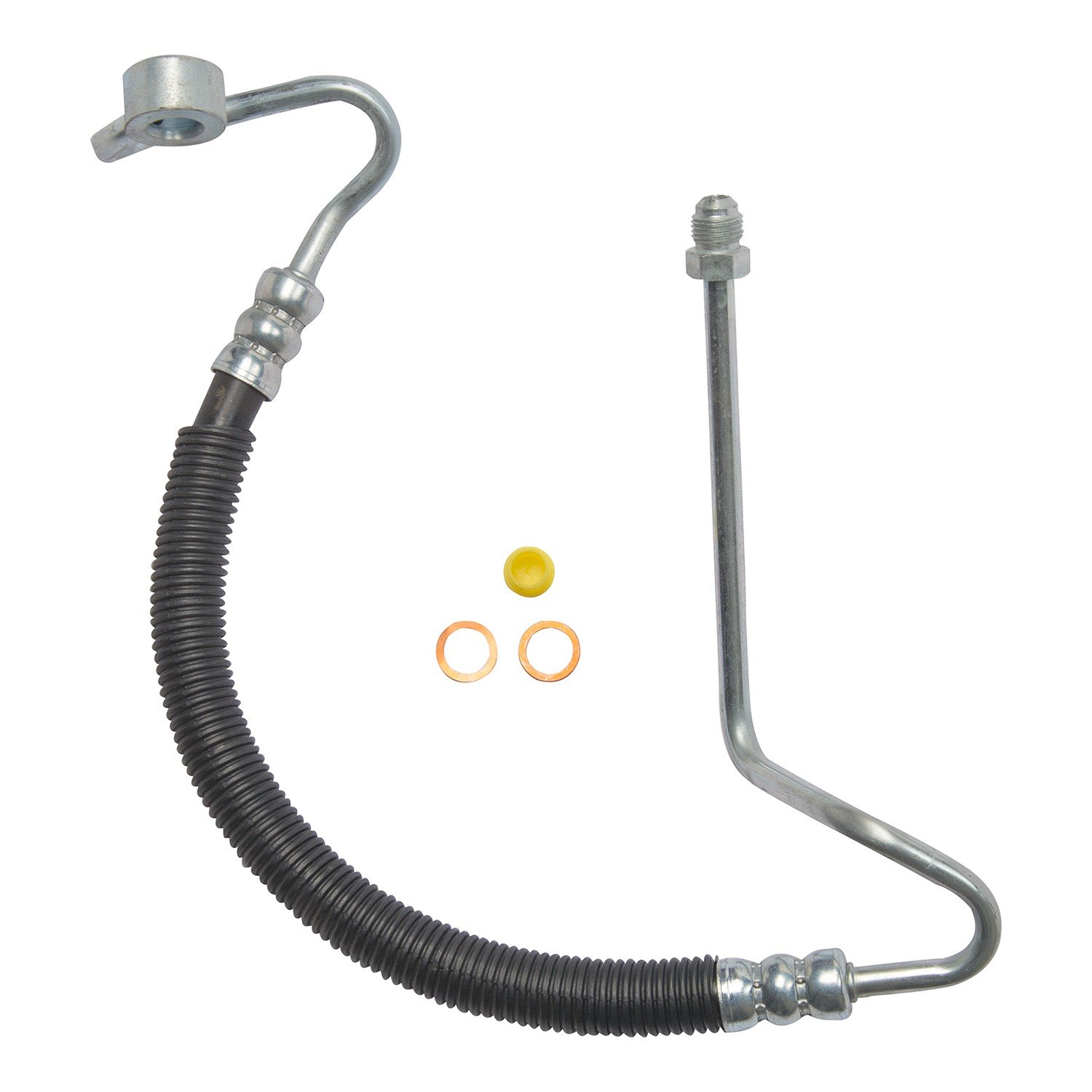 The Edelmann 80456 Steering Pressure Hose is a reliable replacement part designed to ensure smooth and responsive steering in your vehicle. Crafted with high-quality materials, this hose is durable and resistant to pressure, providing long-lasting performance. MPN: 80456