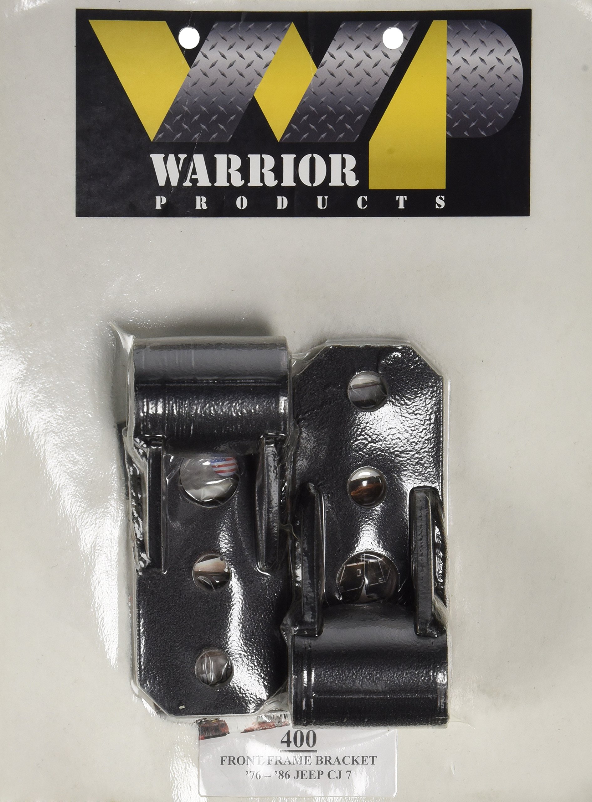 The Warrior 400 Front Shackle Frame Bracket is a rugged automotive part designed for durability. Made from 0.25 in. steel with reinforced gussets, this bracket ensures a secure fit without unwinding. MPN: 400.